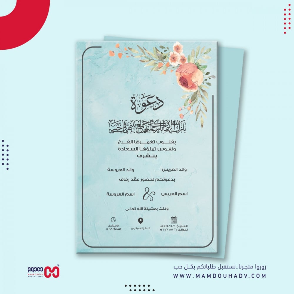 كرت زواج بشكل جذاب وأنيق لمناسبتك يمكنك طباعته.