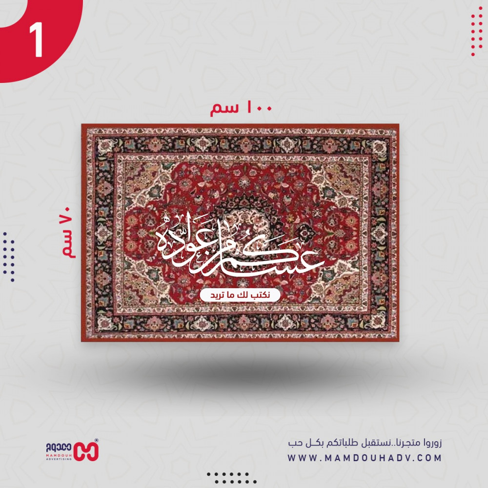احتفل بأجواء العيد بأسلوب جديد من خلال طباعة اسمك أو أسماء احبائك على سجادة العيد ويمكنك تزيين منزلك أو مكتبك بهذه السجادة بطريقة تعبر عن شخصيتك.