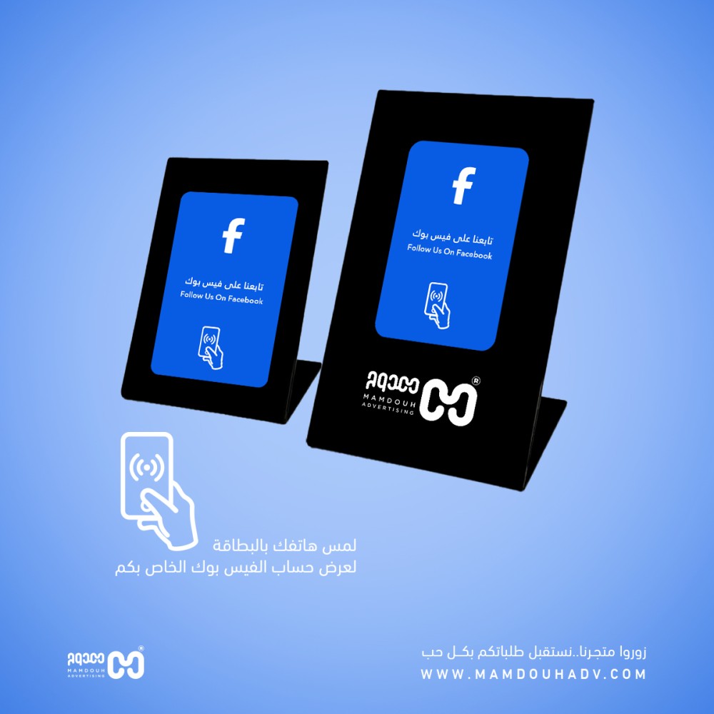 ستاند فبس بوك بتقنية NFC ما عليك سوى لمس هاتفك بالبطاقة لعرض حساب الانستقرام الخاص بكم وهو طريقة سهلة ومبتكرة لزيادة عدد المتابعين الخاصين بكم