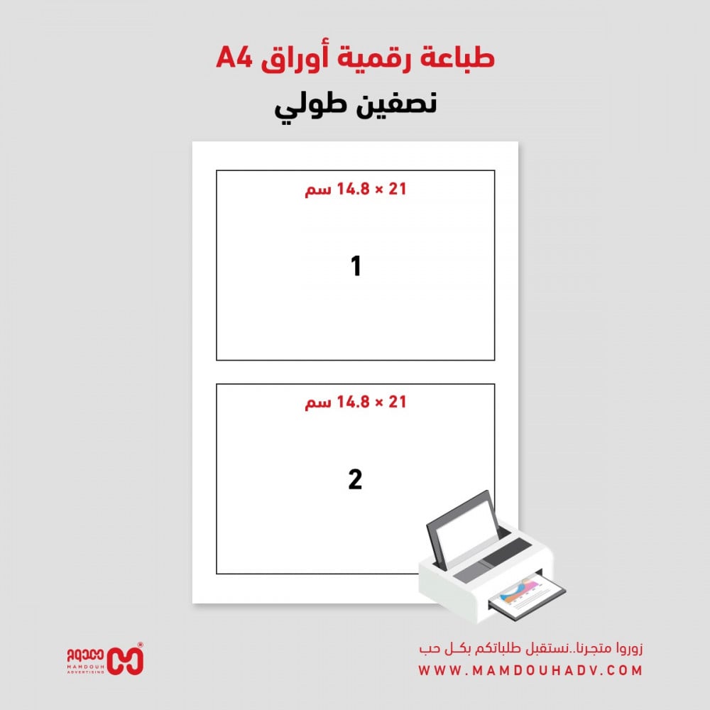 طباعة ورقة A4 الى نصفين بشكل طولي