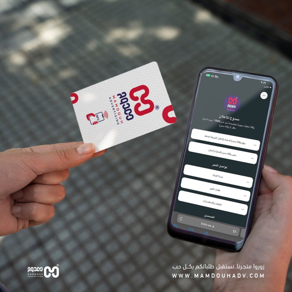 بطاقة خاصة بتقنية NFC يتم إنشاء رابط لينك تري واضافة جميع روابط التواصل الخاصة بكم وربطه بالبطاقة لتسهيل مشاركة معلوماتكم مع العملاء